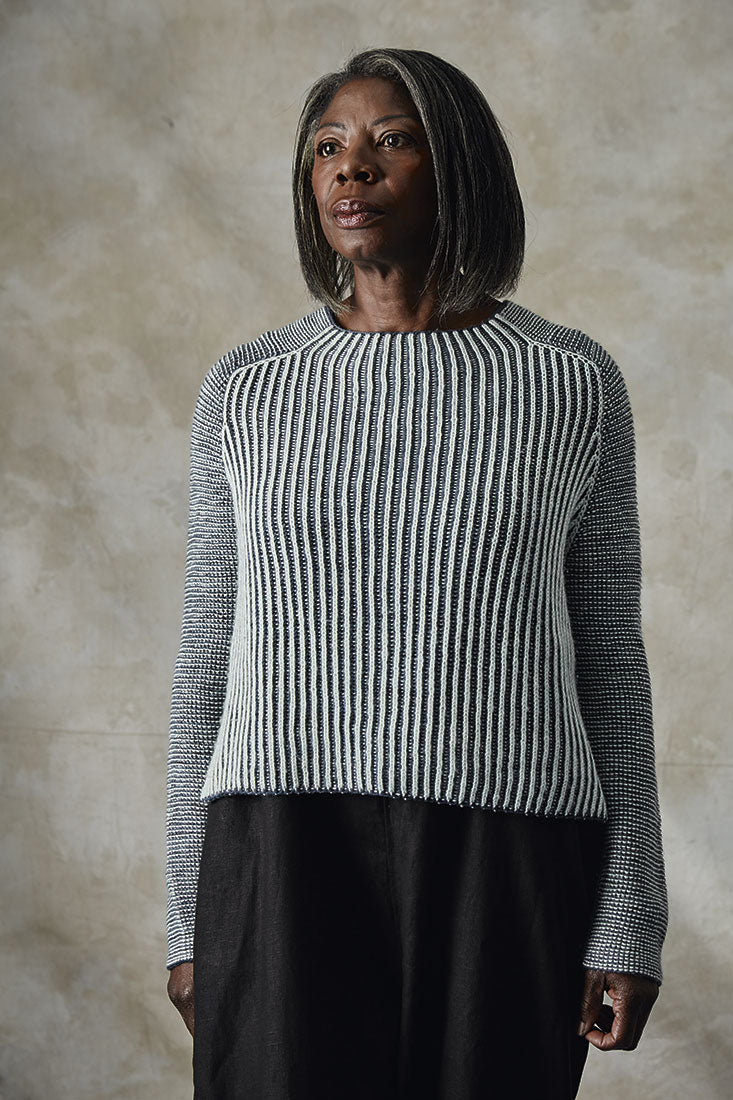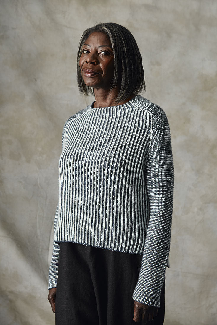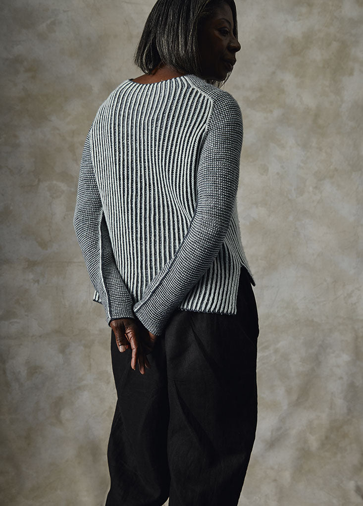 Färdig bystvidd: 92 (103,5, 113, 124,5, 136,5) cm / 36¼ (40¾, 44½, 49, 53¾)” – bärs med 15–20 cm / 6–8” positiv rörelsevidd.